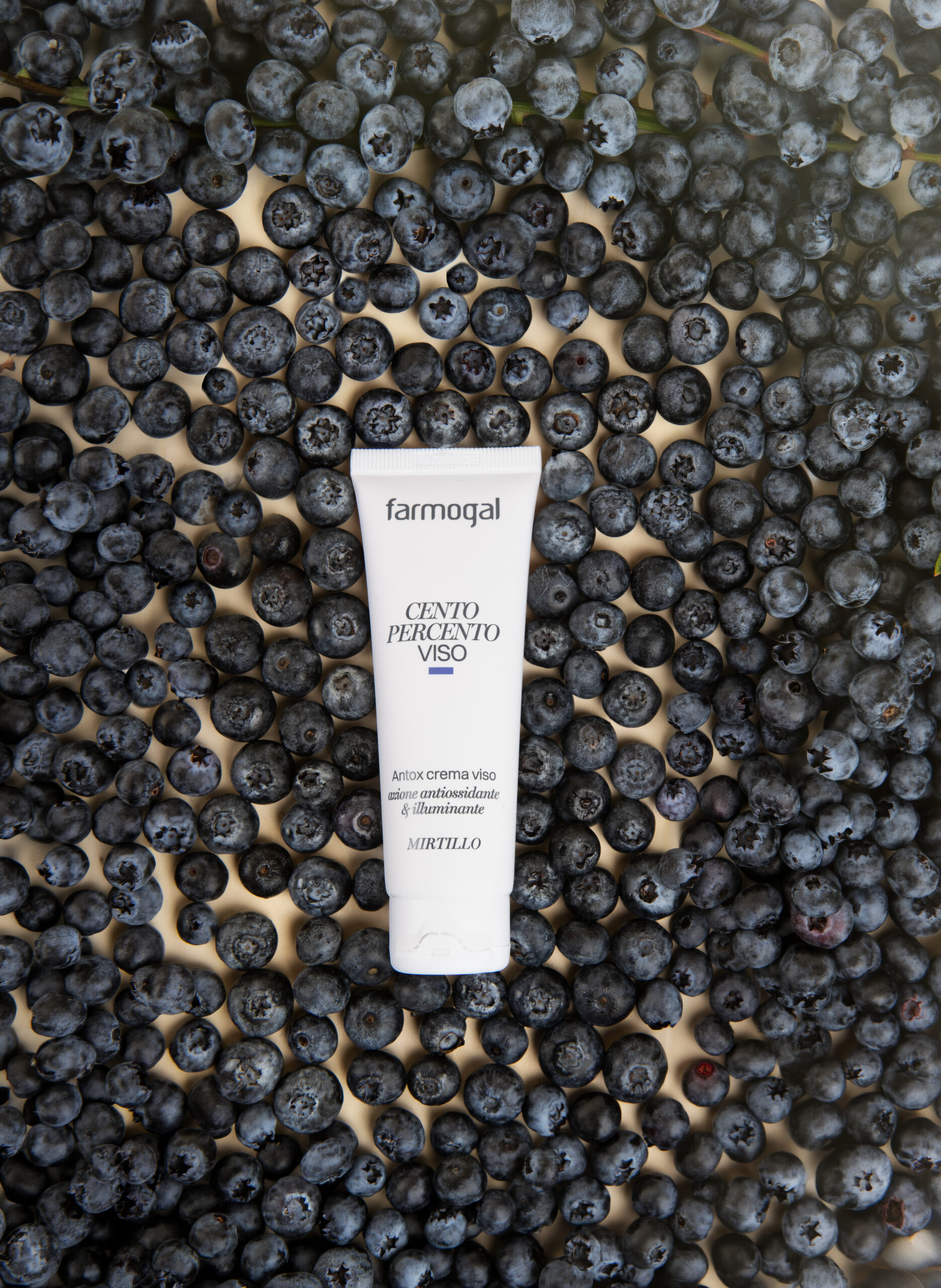 Crema leggera formulata con estratto di mirtillo, illuminante e ideale per prevenire l’ageing; perfetta come base per il make-up.